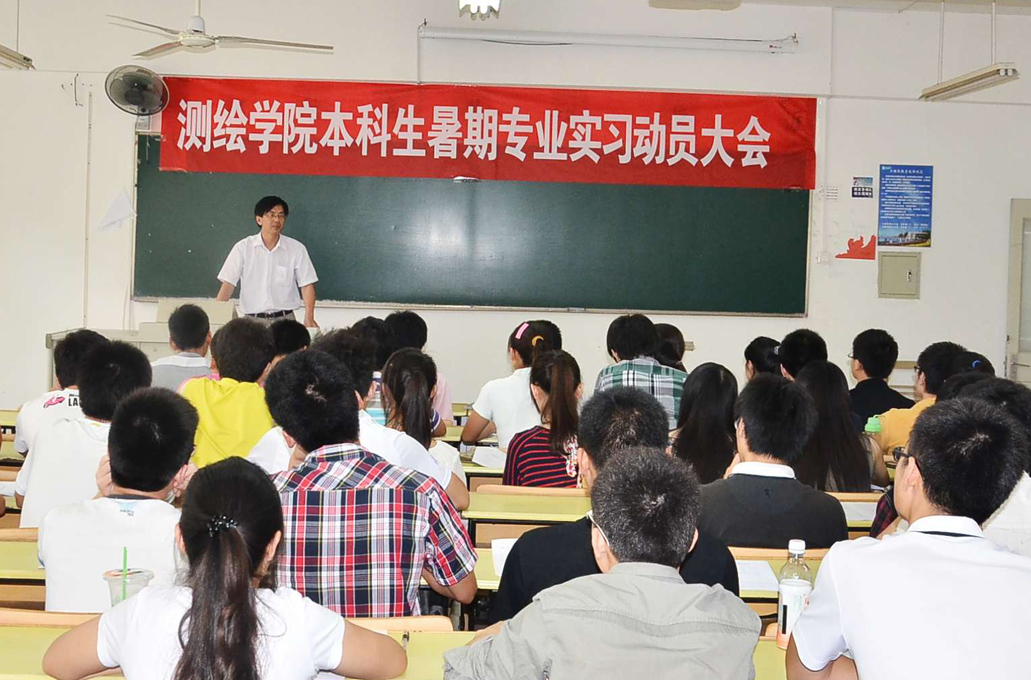 首先,段然堂副书记阐述了新时期学院人才培养的目标和任务,解释了组织实施员工暑期专业实习的背景和动因,并宣读了实习分组名单。本次员工暑期专业实习共组织江苏省地质勘查技术院、泰州市测绘研究院、盐城市勘察测绘院、苏州高新区测绘事务所有限公司、南京测绘勘察研究院有限公司和常州市建筑科学研究院等六家单位提供了包括航测调绘、地形图修测外业和内业、地图数据建库、城市水准测量、建筑变形监测及土地发证调查等实习内容的49个岗位。实习分七个小组,分别赴上述六个单位的7个项目基地实习,共安排49个员工参加,其中女生13人。