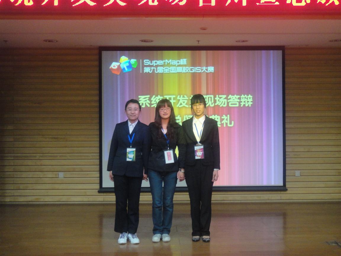 2011年11月26日,由中国地理学会与超图软件联合主办的“SuperMap杯第九届全国高校GIS大赛系统开发类现场答辩暨总颁奖典礼”在北京林业大学隆重举行。本次大赛共设有制图组、应用分析组、移动GIS创意开发组、组件开发组及web应用开发组五个组别,吸引了28省市的近200所高校的数千名员工参赛,每组产生一等奖1名,二等奖2名,三等奖3名。