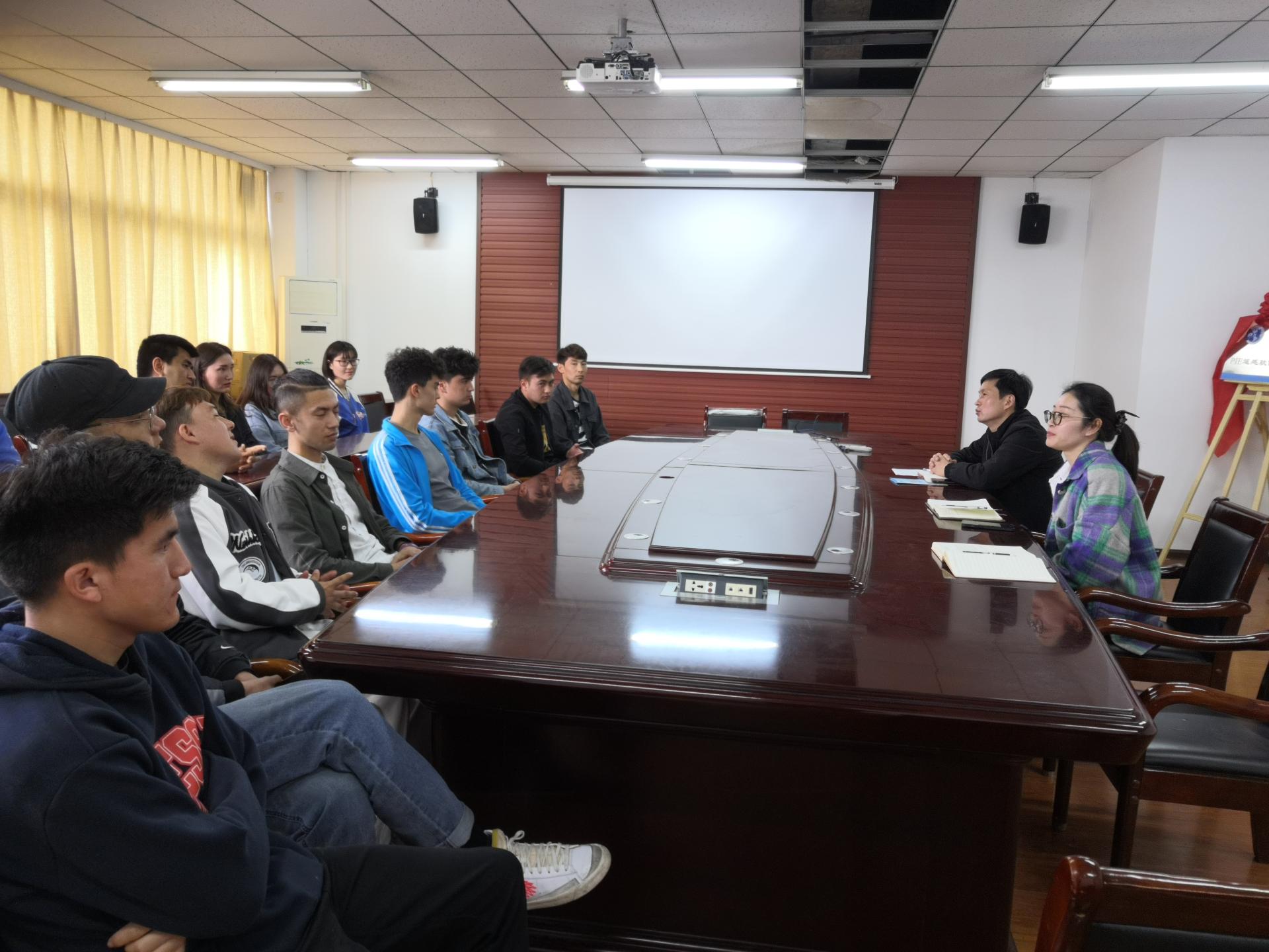 会议伊始,张甲田老师传达了学校员工工作的会议精神,对新疆同学的各方面表现作出肯定,希望大家保持良好的精神面貌和积极的学习状态迎接新的学期;在思想、学习和生活上严格要求自己,做好学涯规划,积极参加各类活动,提升综合能力。随后,各位老师就学习难度、生活状况、毕业打算等与同学们进行了深入交谈。