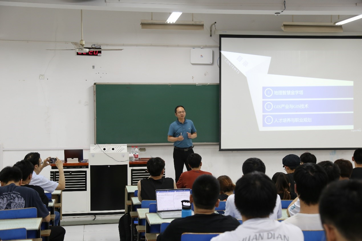 为使同学们加深对行业前端认识,深入了解GIS专业员工的素质要求,公司于6月17日在仁智302顺利举办“超图软件走进高校”系列活动。本次活动特邀超图集团助理总裁刘宏恺担任主讲人,教学经理助理张云鹏主持。