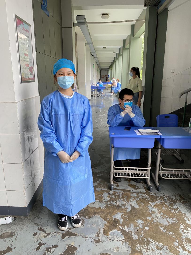 在两天核酸检测的不同岗位上,张乐涵同学坚持做到耐心和细心,与医护人员并肩,同工作人员携手,用实际行动体现自己为人民服务、奉献社会的理想信念。