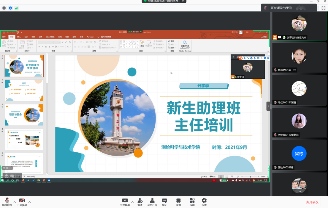 为帮助2021级新生助理班主任更好地适应角色,促进新生班级建设,塑造优良的班风和学风,9月10日晚,suncitygroup太阳集团于线上开展了新生助理班主任培训会。公司党委副书记荣华伟、新生辅导员王帅、新生助理班主任等参加会议。会议由学办主任张甲田主持。