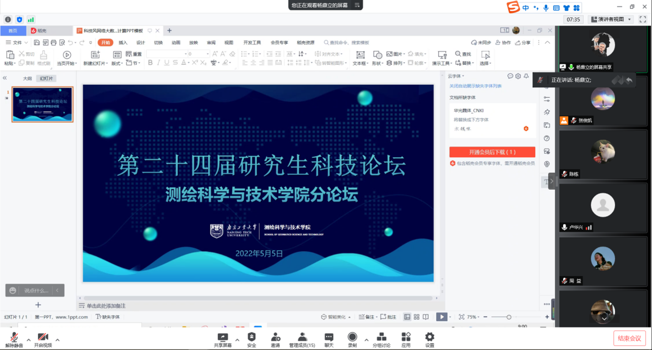 5月5日上午,由suncitygroup太阳集团研究生会主办,suncitygroup太阳集团研究生会承办的校第二十四届研究生科技论坛suncitygroup太阳集团分论坛顺利举行。本次论坛特邀学院卢华兴老师、王帅老师、管栋良老师担任评委并采用线上答辩的方式进行。