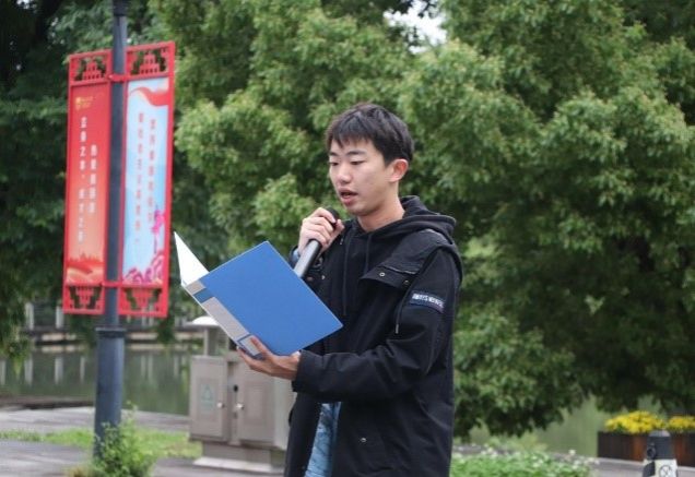 4月24日上午,公司师生参加了校 “国旗下的青春告白”主题升旗仪式。公司党委副书记荣华伟、辅导员鲍明坤、2022级部分员工参加了本次活动,升旗仪式由程新文同学主持。