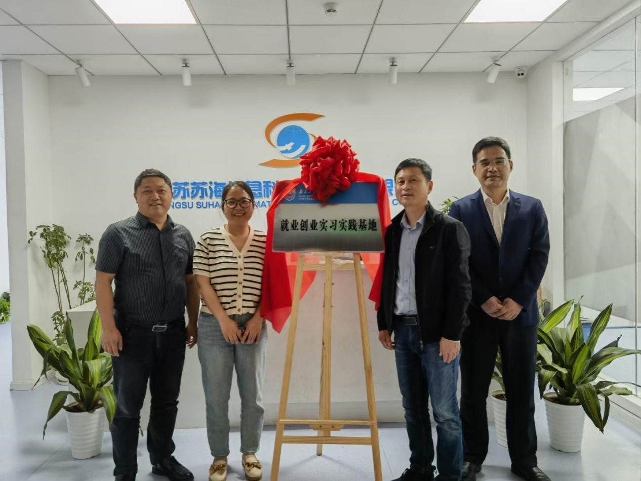 江苏苏海信息科技有限公司董事长丁玉平对学院一行表示热烈欢迎并陪同参观调研。参观结束后,双方就校企合作、人才培养、就业创业等相关事宜展开深入交流。丁玉平董事长介绍了企业的基本情况、发展历程和资质荣誉等,并表示愿意与学院建立良好且长久的校企合作关系。俞建光书记表示,要以本次调研为契机,发挥企业和学院各自特长,相互结合,为学校和企业培养更多优秀人才。座谈会后,双方签订了就业创业实习实践基地协议等,并为基地揭牌。