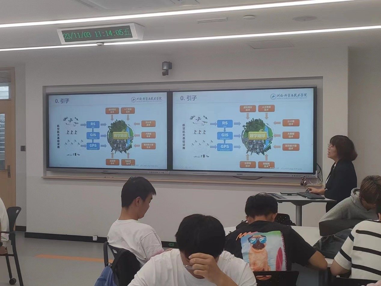 随后,吴云清老师系统讲解了地理空间信息工程专业的培养方案、学院的办学特色,并强调了学业规划的重要性。刘双兵同学解答了同学们有关学科竞赛的疑问,并鼓励大家主动了解并积极备战各类学科竞赛。最后吴老师分享了本专业的就业情况,她表示本专业前景光明,充满无限可能,希望同学们结合自身实际情况,思考就业、考研情况,并对就业和考研分别给予了相应建议。