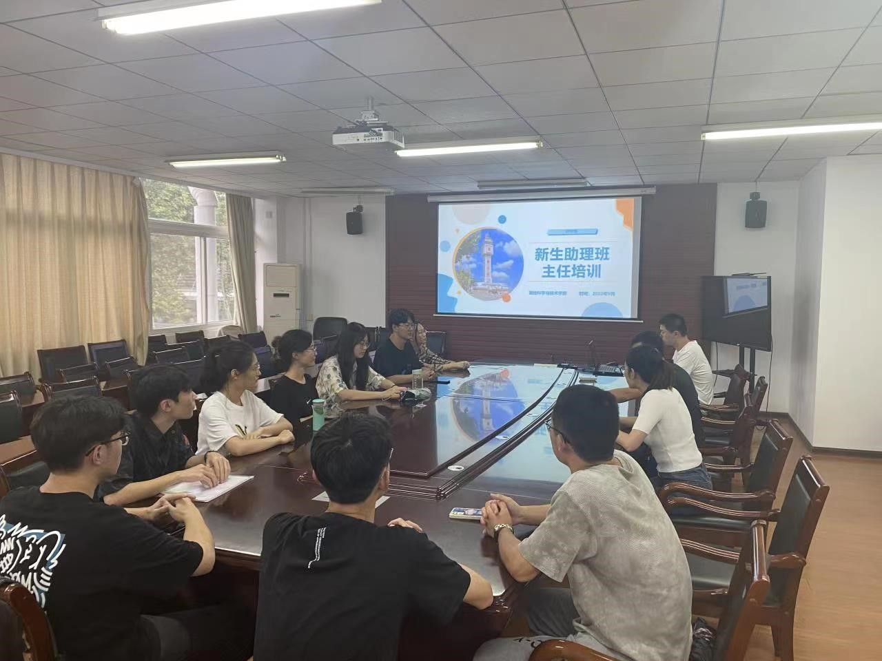 会议伊始,荣华伟副书记就助理班主任的工作方式与内容向同学们做了简要分享。之后,张甲田老师就与新生的沟通问题提出建议——保持一定沟通频率,保证助理班主任能及时了解新生的所思所想,积极解决他们的困惑和问题。随后,张老师对新生助理班主任进行了培训,分别从安全、纪律、学习、班级建设等方面强调了新生助理班主任的职责,并强调助理班主任的带领作用和服务精神,要注重新生的生命财产安全、身心健康、学习态度、班干选拔等问题。最后,2022级助理班主任陈江华针对新生报到工作进行了具体指导,包括新生应带物品、迎新注意事项等,强调助理班主任要有耐心、热心和细心。
