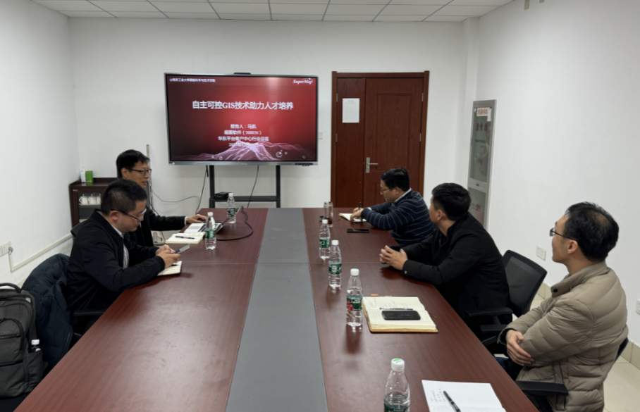 徐敬海代表学院向公司对学院人才培养、毕业生就业等工作的支持表示感谢,并详细介绍了学院地理空间信息工程专业建设、毕业生深造与就业等情况。夏翔经理着重介绍了超图软件面向高校GIS的合作意向和规划,并详细介绍了联合办学、产教融合等方面的公司政策。