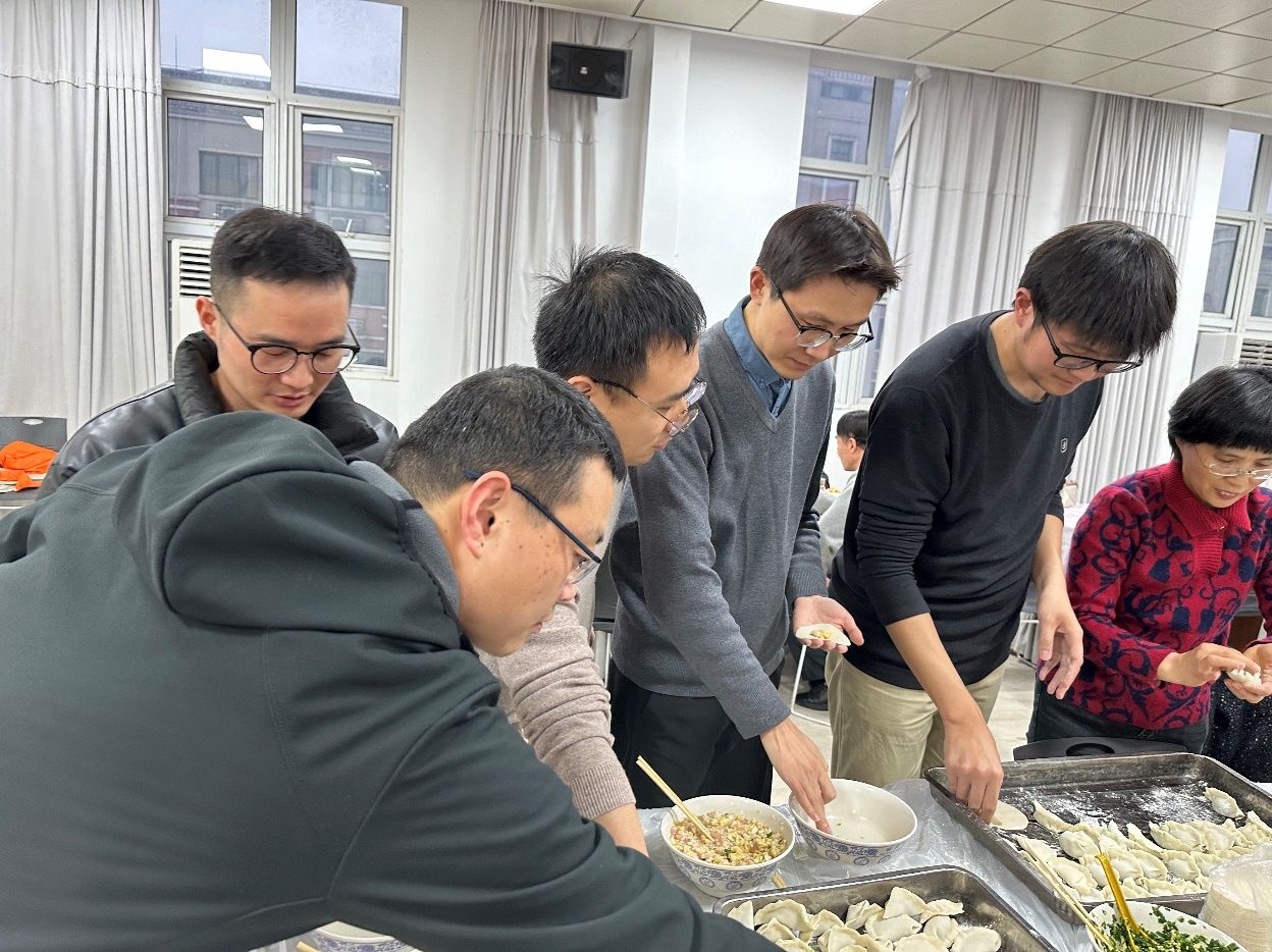茶话会上,有的在掼蛋、有的在包饺子,有的围坐在一起交流工作、生活中的趣事。包饺子的现场是最热闹的,大家有说有笑,各显神通,包出形状各异的饺子。