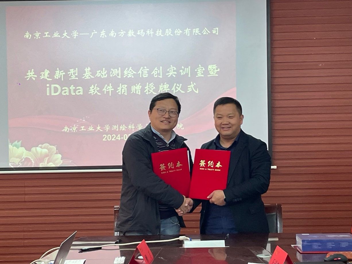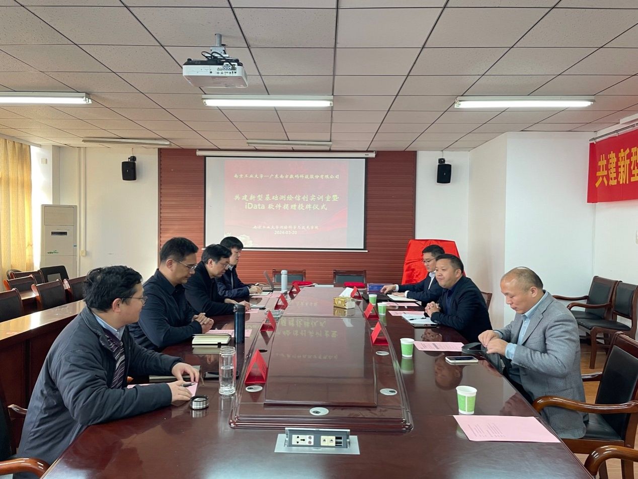 为进一步促进产学研深度融合,优化校企协同育人模式,提高人才培养质量,3月20日下午,公司与广东南方数码科技股份有限公司举行共建新型基础测绘信创实训室暨iData软件捐赠授牌仪式。南方数码副总经理吉绪发、南方数码南京分公司总经理袁才、南方数码生态合作中心产品经理王道智,公司党委书记俞建光、教授委员会主任李明峰、副经理束蝉方等参加会议,会议由副经理束蝉方主持。