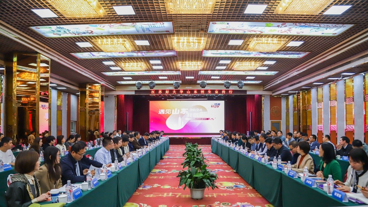 4月10日下午,在山东省济南市隆重举行了“江苏好大学”在山东的招生交流活动。山东省考试公司党委书记、经理李霞,济南市教育招生考试院经理邵晋波等考试院的主要领导出席活动。李霞在致辞时表示,山东作为高考考生大省、优质高考生源大省,基础教育稳居全国第一阵营,全省基础教育学校总数居全国第2位。希望通过此次活动,能够与江苏高校加强交流与合作,使山东更多优质生源可以到江苏高校就读,共同推动两地教育事业的繁荣发展。座谈会上,江苏省高校与山东省内24所优质高中的代表共同就新高考政策、特殊类型招生以及人才培养等话题展开深入研讨。