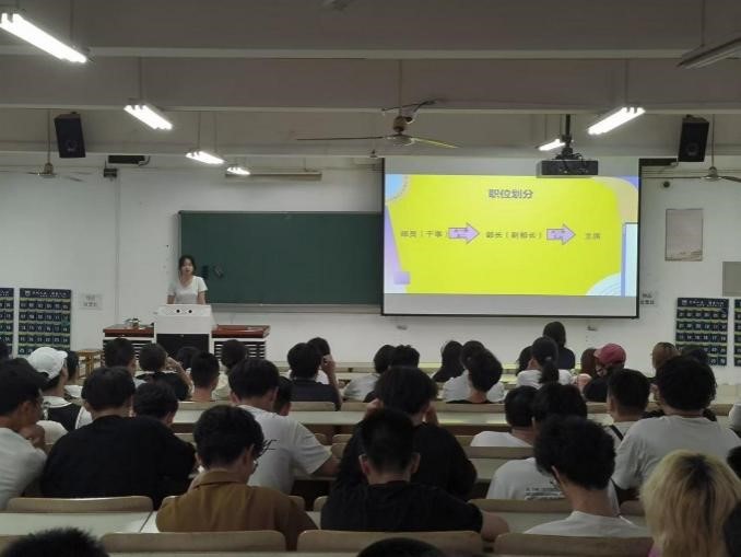 团学辅导结束后,院员工会肖瑾柔同学以网络、员工主流观点为题介绍了院员工会的基本情况,帮助同学们深入了解员工会这一组织。年级团总支吴雨桐同学详细介绍了年级团总支的作用及其定位,鼓励同学们积极报名参加。