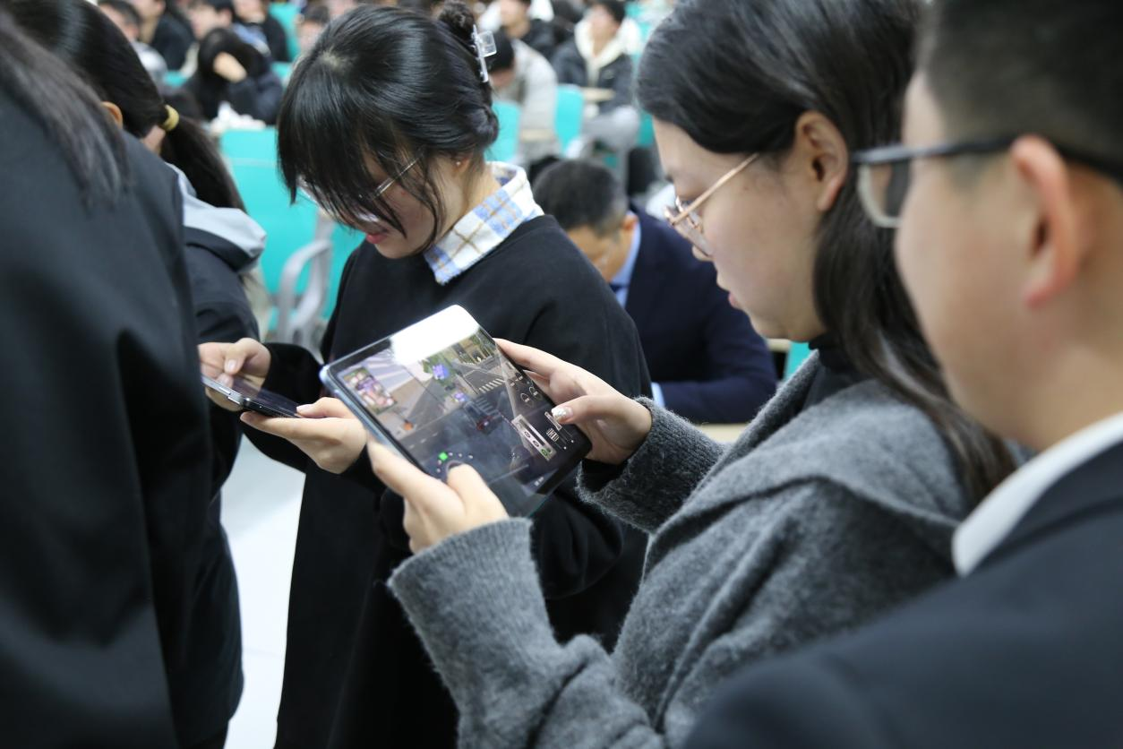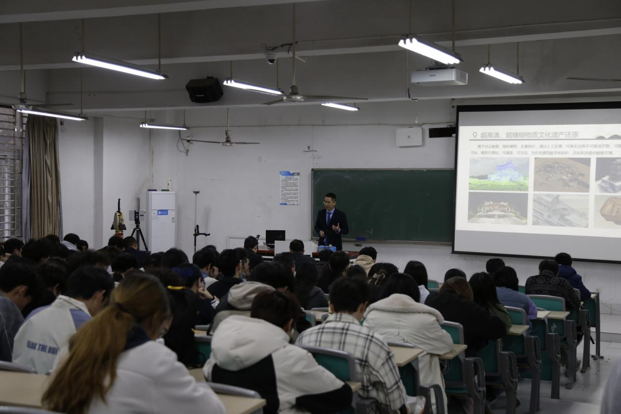 首先,袁大伟总经理以“数字孪生技术赋能文化遗产智慧保护”为主题,系统阐释了基于高精度三维激光扫描、倾斜摄影建模等数智化技术的历史建筑数字建档方法体系。郭宝宇副总裁以“元宇宙重构测绘地理信息新范式”为题,深入剖析了地理空间智能、数字孪生城市、混合现实等技术集群引发的行业创新范式跃迁。在虚实融合创新实践环节,与师生通过混合现实交互系统体验了数字孪生城市实景导航、地质灾害虚拟仿真推演等场景化应用,并实地操作配备AI视觉系统的全站仪、厘米级定位精度的RTK接收机、多光谱遥感无人机等新一代智能测绘装备。这种“理论建构-技术解析-工程验证”三位一体的研讨模式,生动诠释了测绘学科从传统大地测量向空间智能服务的范式变革。
