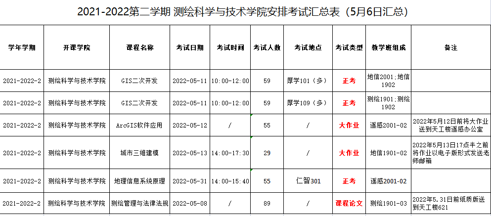 2021-2022学年第二学期suncitygroup太阳集团考试安排汇总表(5月6日汇总)