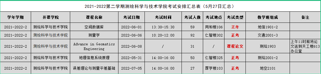 2021-2022学年第2学期suncitygroup太阳集团考试安排汇总表(5月27日汇总)
