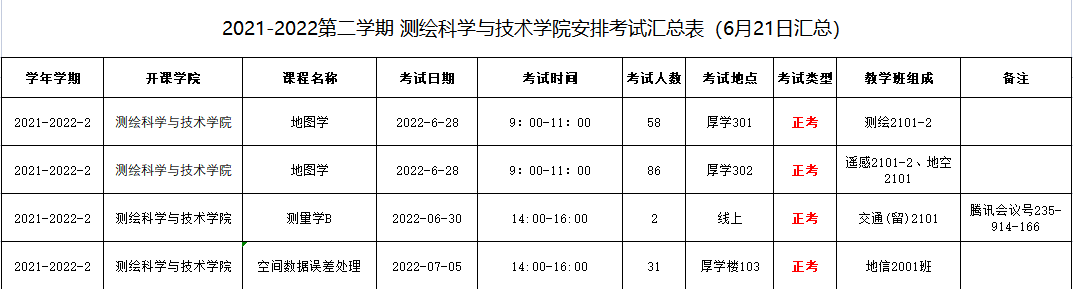 2021-2022学年第二学期suncitygroup太阳集团考试安排汇总表(6月21日汇总)