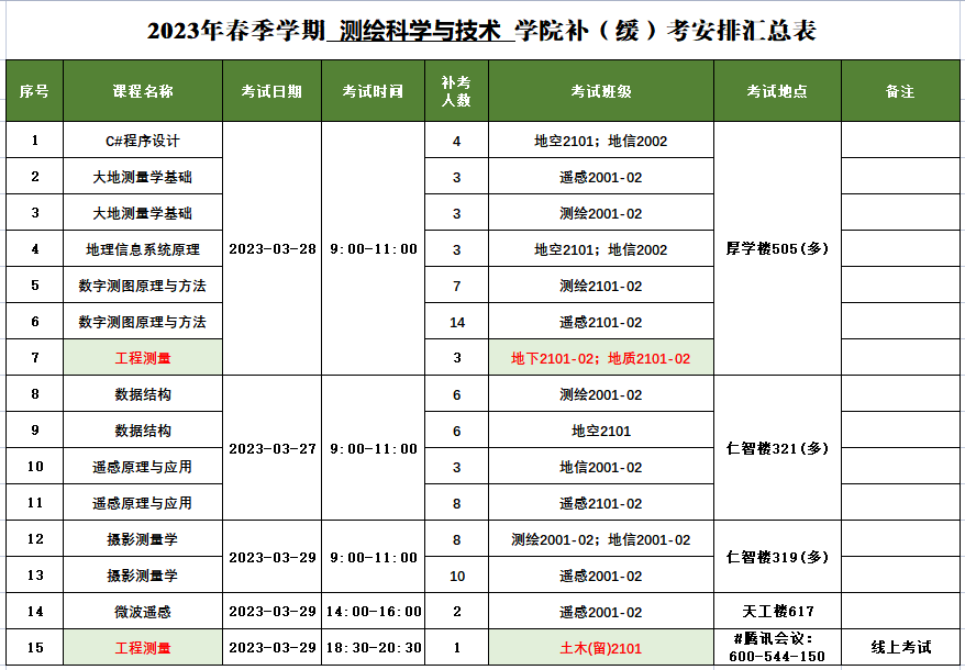 suncitygroup太阳集团2023年春季学期补(缓)考安排汇总表