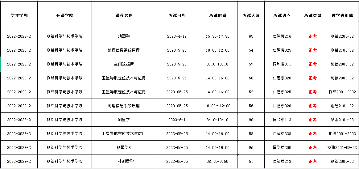 2022-2023学年第2学期suncitygroup太阳集团考试安排汇总表