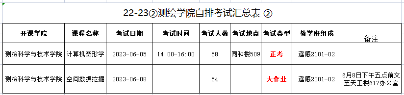2022-2023学年第二学期suncitygroup太阳集团安排考试汇总表