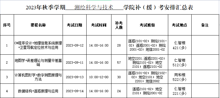 2023年秋季学期suncitygroup太阳集团补(缓)考安排汇总表