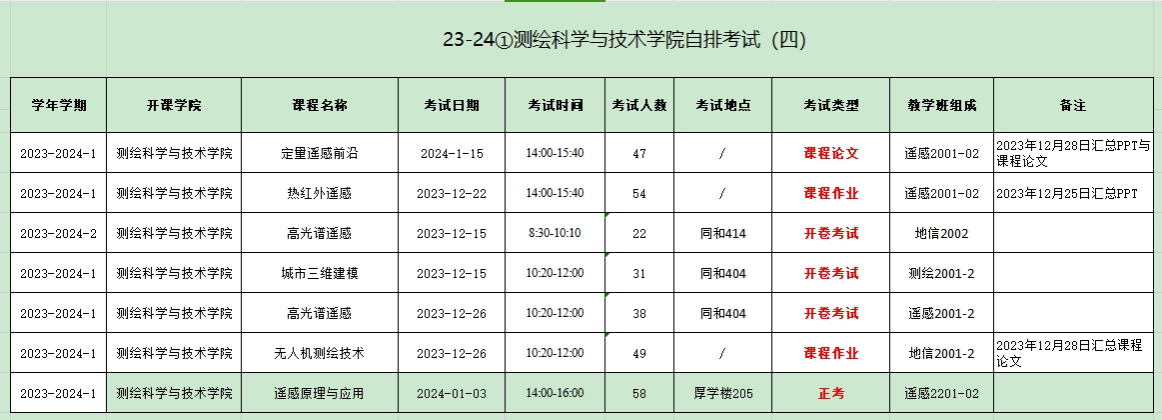 2023-2024第一学期suncitygroup太阳集团考试安排汇总表(4)