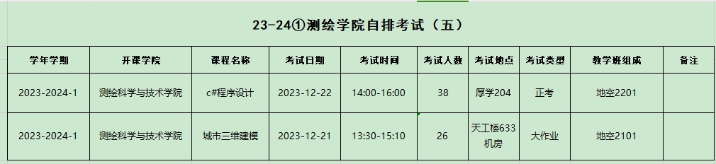 2023-2024第一学期suncitygroup太阳集团考试安排汇总表(5)