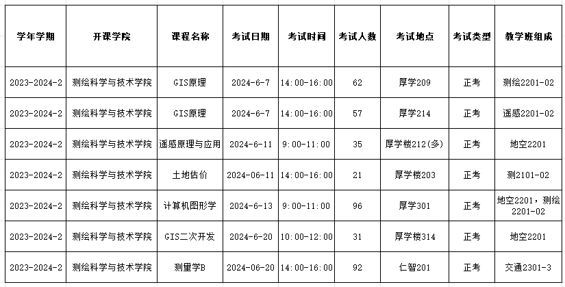 2023-2024学年第2学期suncitygroup太阳集团自排考试信息汇总表(1)