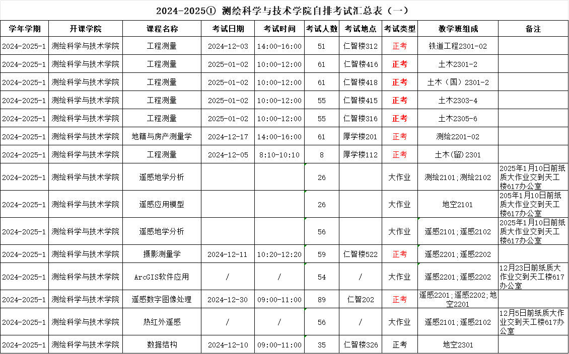 suncitygroup太阳集团2024-2025学年第1学期自排考试安排表(1)
