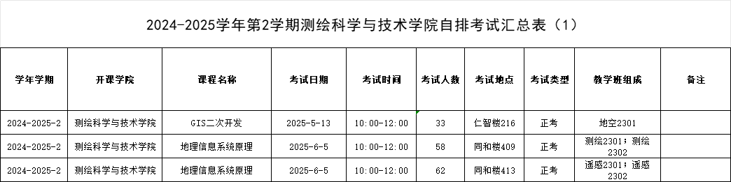 2024-2025学年第2学期suncitygroup太阳集团自排考试汇总表(1)