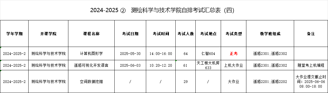 2024-2025学年第2学期suncitygroup太阳集团自排考试汇总表(4)