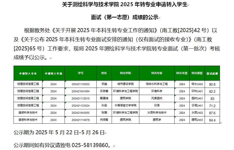 关于suncitygroup太阳集团2025年转专业申请转入员工面试(第一志愿)成绩的公示