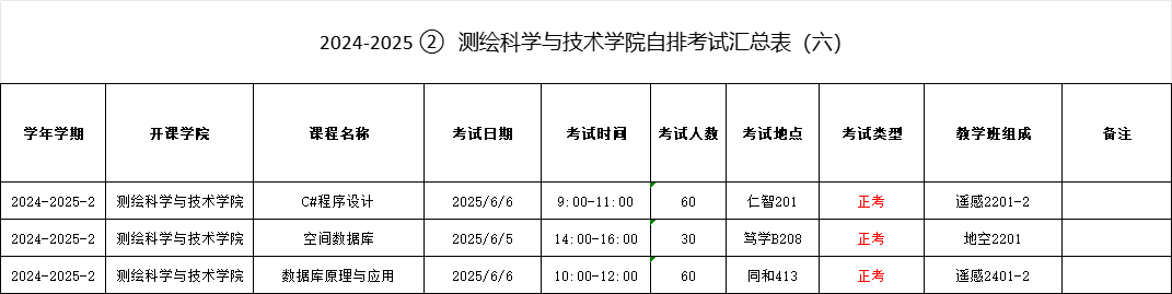 2024-2025学年第2学期suncitygroup太阳集团自排考试汇总表(6)